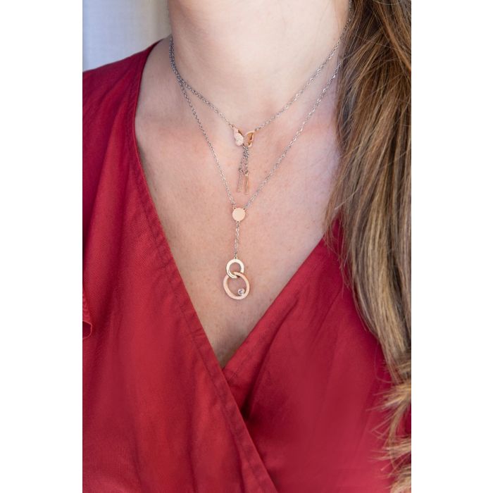 *Luca Barra colar mulher com círculo de aço.*Círculo de aço Rosé com cristal branco.*Comprimento: 40 + 5 cm*Diâmetro do círculo: 17 mm