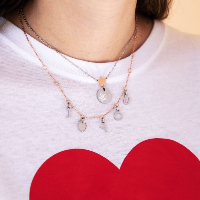 *Colar feminino Luca Barra com placa de aço e estrela.*Placa de aço com estrela com cristais brancos. Estrela de aço Rosé.*Comprimento: 40 mais 5 cm*Diâmetro do pendente: 15 mm