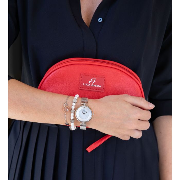*Pulseira feminina Luca Barra com um círculo de aço.*Círculo de aço Rosé com cristal branco.*Comprimento: 16 + 3 cm*Diâmetro do círculo: 16 mm