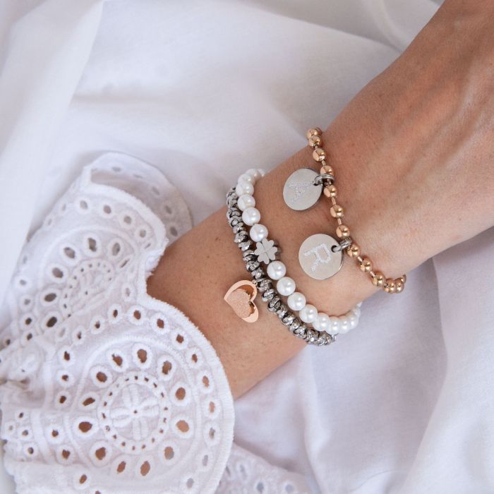 *Luca Barra pulseira feminina de aço com coração.*Coração de aço Rosé com brilho rosé.*Comprimento: 16,5 + 3 cm*Tamanho do coração: 15 x 13 mm