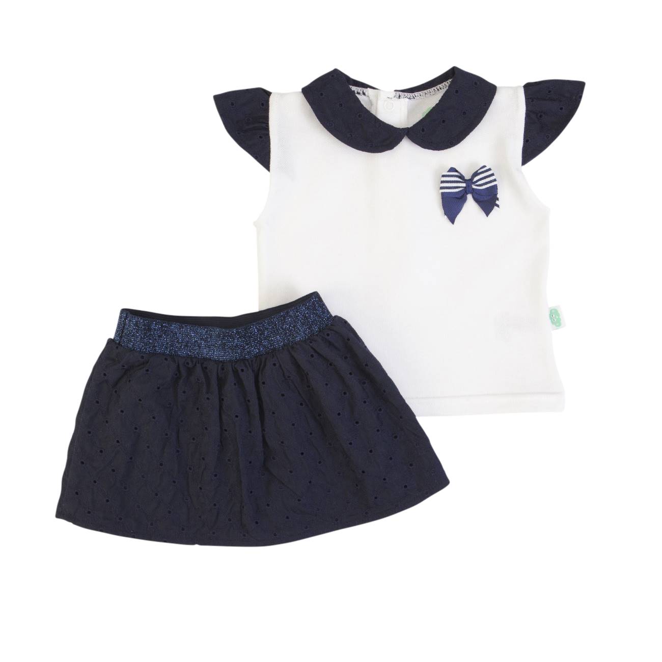 Conjunto de 2 peças: t-shirt com abertura nas costas + saia (tecido)