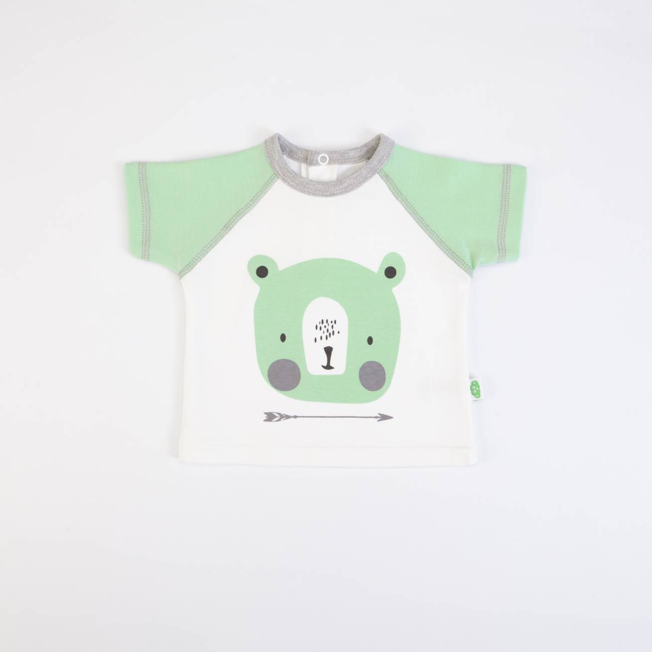 Conjunto de 2 peças: t-shirt de manga curta com abertura atrás + calções.